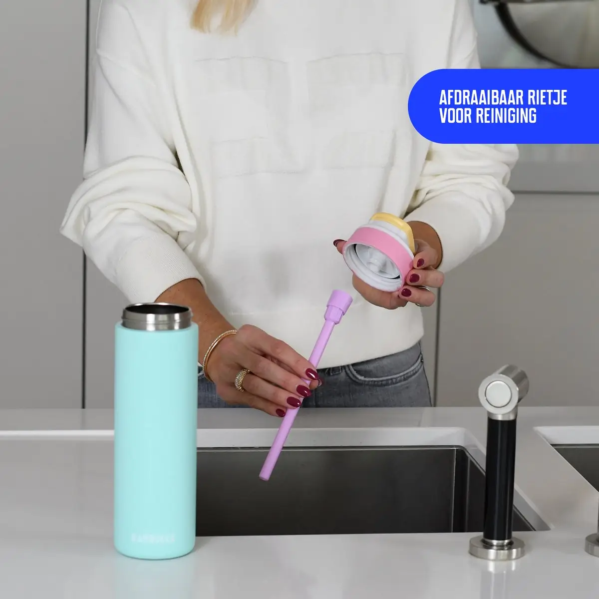 De fles is voorzien van een geïntegreerd rietje waarmee je comfortabel kunt drinken zonder de fles te kantelen. De dop is 100% lekvrij, BPA-vrij en voorzien van het handige SnapClean®-systeem, waardoor je het binnenwerk eenvoudig kunt verwijderen en reinigen. Het frisse Jelly Mint Turquoise design maakt deze fles niet alleen functioneel, maar ook een echte blikvanger.