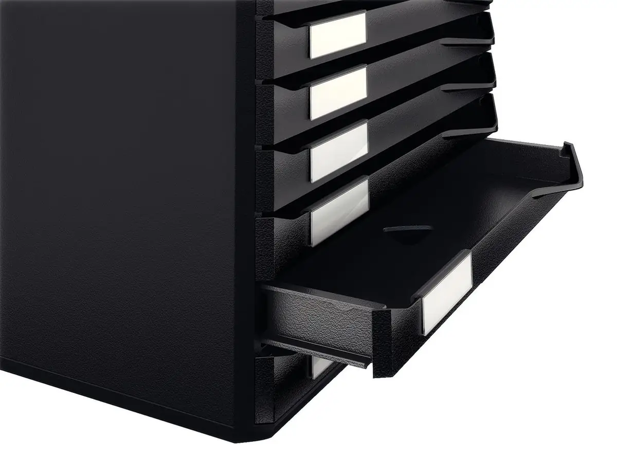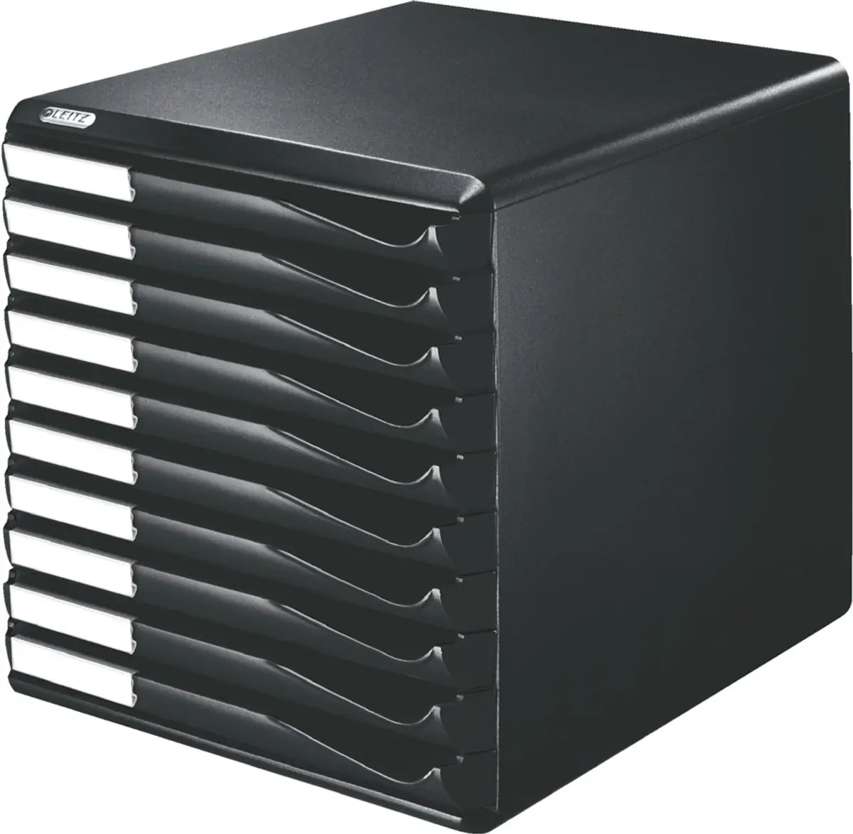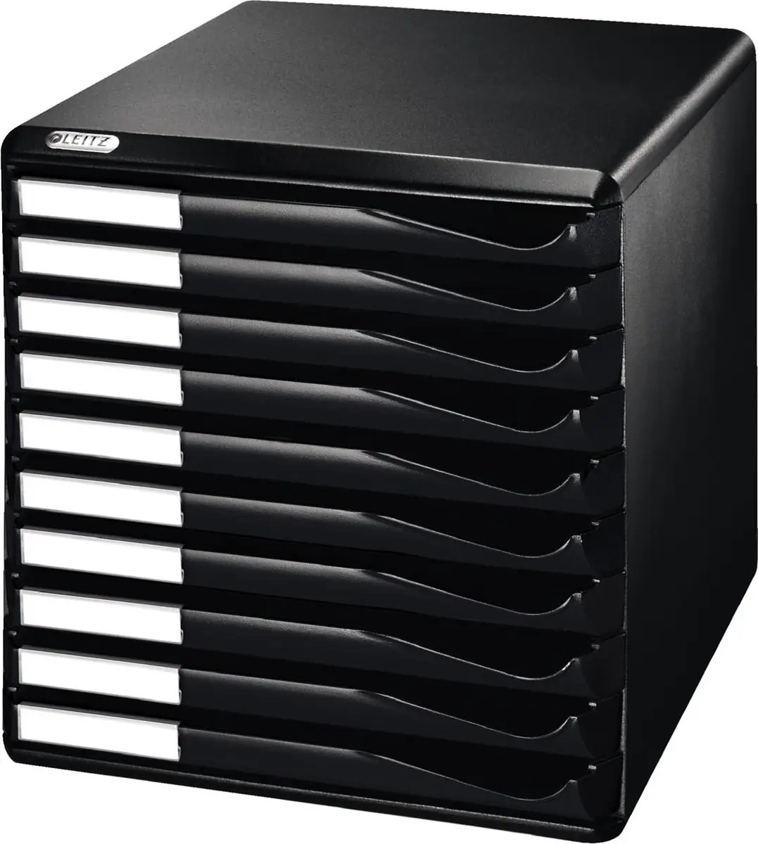 Het Leitz ladenblok met 10 laden is een praktische en overzichtelijke oplossing voor het organiseren van documenten, kantoorartikelen en diverse kleine benodigdheden. Dit stevige ladensysteem is uitgevoerd in een strakke zwarte kleur en past daardoor moeiteloos in zowel een thuiswerkplek als een professioneel kantoor. De tien soepel lopende laden bieden ruime opbergmogelijkheden en zijn ideaal voor het sorteren van papierwerk, formulieren of accessoires die u graag binnen handbereik bewaart.