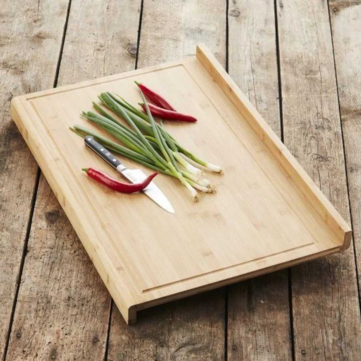 Maak optimaal gebruik van je keukenruimte met deze bamboe aanrechtplank. Ideaal om snel extra werkruimte te creëren boven je gootsteen, wasbak of kookplaat. Het stevige bamboehout zorgt niet alleen voor een natuurlijke uitstraling, maar is ook hygiënisch, duurzaam én onderhoudsvriendelijk.