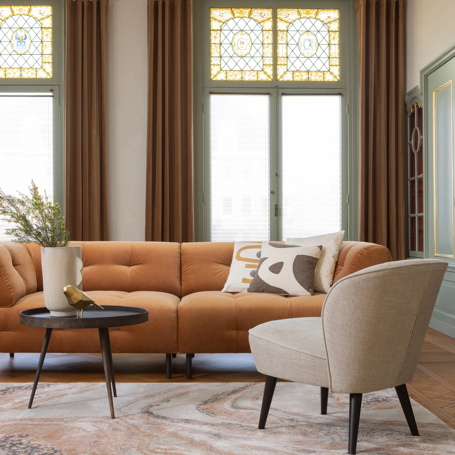 De Bounds bijzettafel L is een stijlvolle en karaktervolle tafel die eenvoudig sfeer toevoegt aan de woonkamer, hal of slaapkamer. Het ronde blad heeft een warme, geleefde uitstraling en vormt samen met het metalen onderstel een mooi geheel. Door de antique gouden afwerking past deze tafel goed in zowel een modern als een wat meer industrieel of vintage interieur.