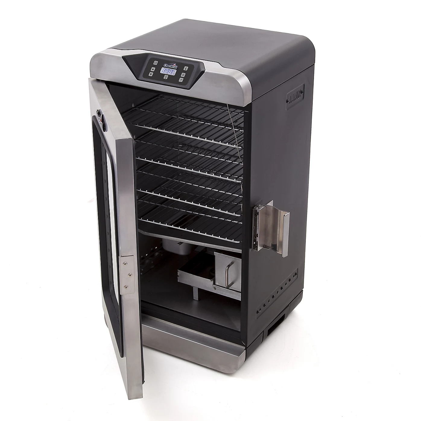 Ontworpen voor degenen die houden van de klassieke, rijke smaak van gerookte gerechten, maar een modernere, probleemloze rookoptie willen. Deze roker heeft een groot kijkvenster en binnenverlichting. Rook ribbetjes, kip, kalkoen en varkensvlees, maar dan met gemak. De geïsoleerde, dubbelwandige constructie en de grote, roestvrijstalen vergrendeling voor een rookdichte afsluiting houden de warmte waar die hoort om perfect te koken.