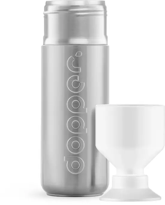 De roestvrijstalen body is afgewerkt met een duurzame poedercoating. Vertaling: ziet er geweldig uit en is bestand tegen krassen. De kers op de taart? Dankzij het driedelige ontwerp is je Dopper gemakkelijk te vullen en schoon te maken. Door jou, of door je vaatwasser (op max 65 graden).