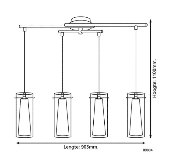 EGLO Pinto – Hanglamp – 4 Lichts – Chroom – Helder, Wit