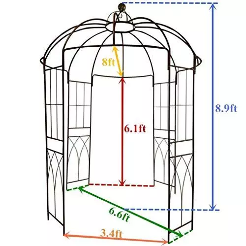 De sierlijke vogelkooi-vorm met vier hoge zijpanelen biedt de perfecte ondersteuning voor klimplanten zoals klimop, clematis, druivenranken, rozen of blauwe regen. Laat je planten natuurlijk omhoog groeien en creëer een sprookjesachtig groen dak.