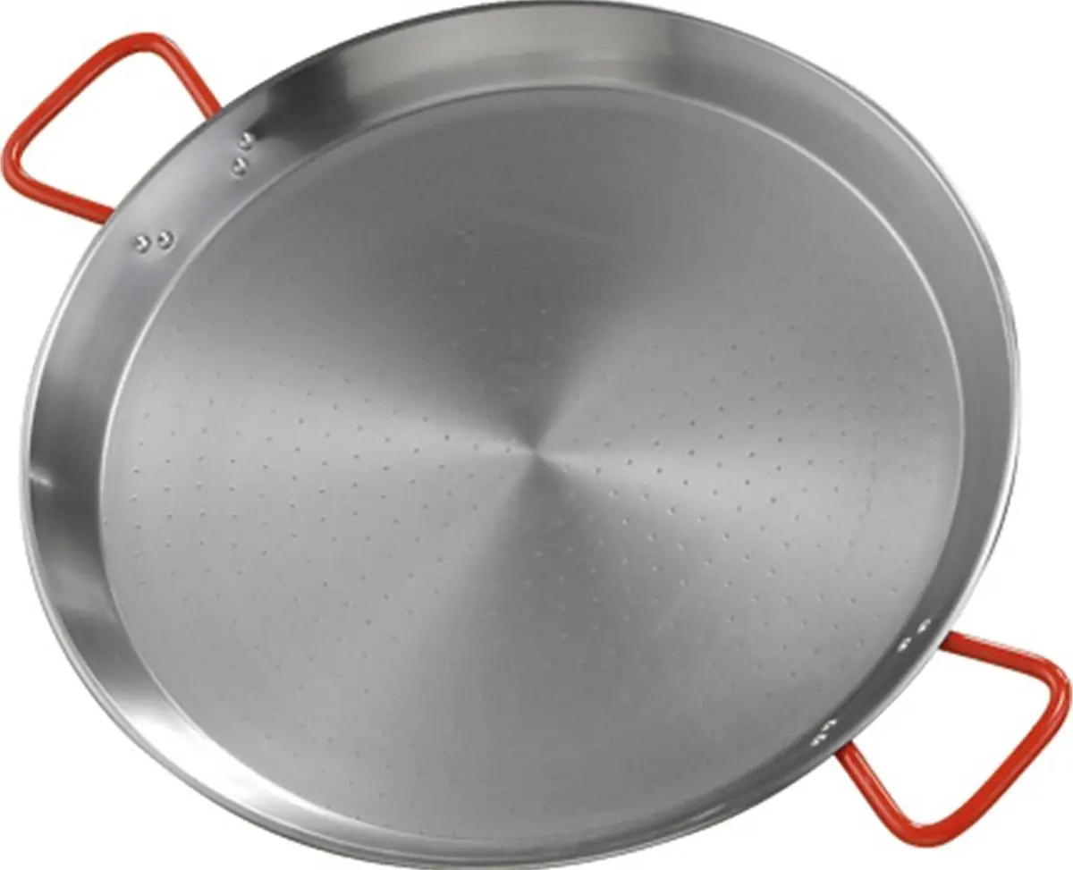 De Garcima Paella Pan met een diameter van 60 cm is perfect voor het bereiden van authentieke Spaanse paella voor grote gezelschappen van 8 tot 10 personen. Gemaakt van hoogwaardig staal dat zorgt voor een snelle en gelijkmatige warmteverdeling, zodat je altijd een perfecte socarrat (krokante bodemlaag) krijgt. Ideaal voor feesten, familie-etentjes of buitenkoken op open vuur.