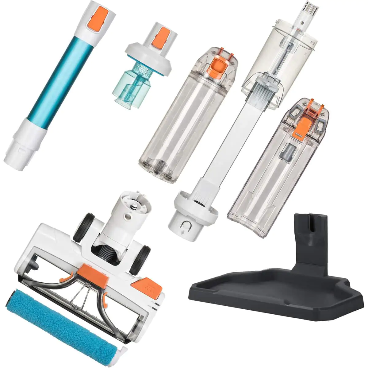 Inhoud: X Waterbasiseenheid, cycloonfilter, aansluitleiding, schoonwatertank, vuilwatertank, gemotoriseerde reinigingsvoet, borstelrol, opberg- en reinigingsstation