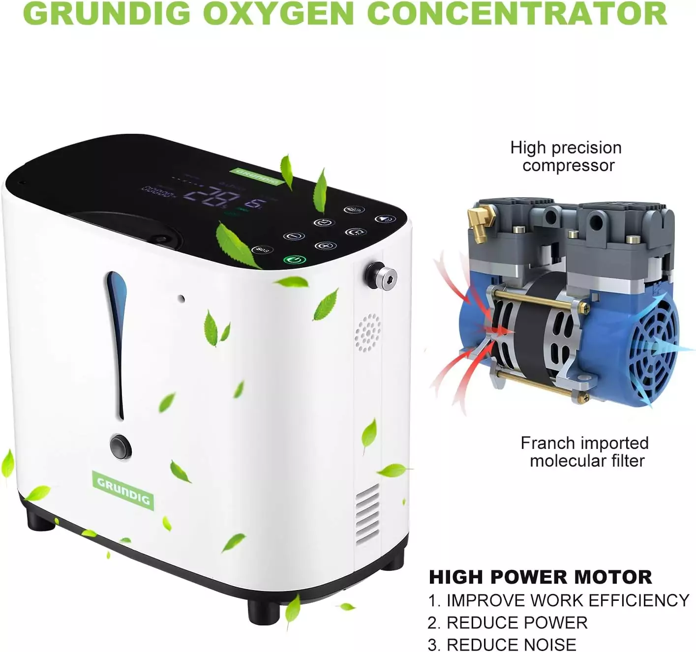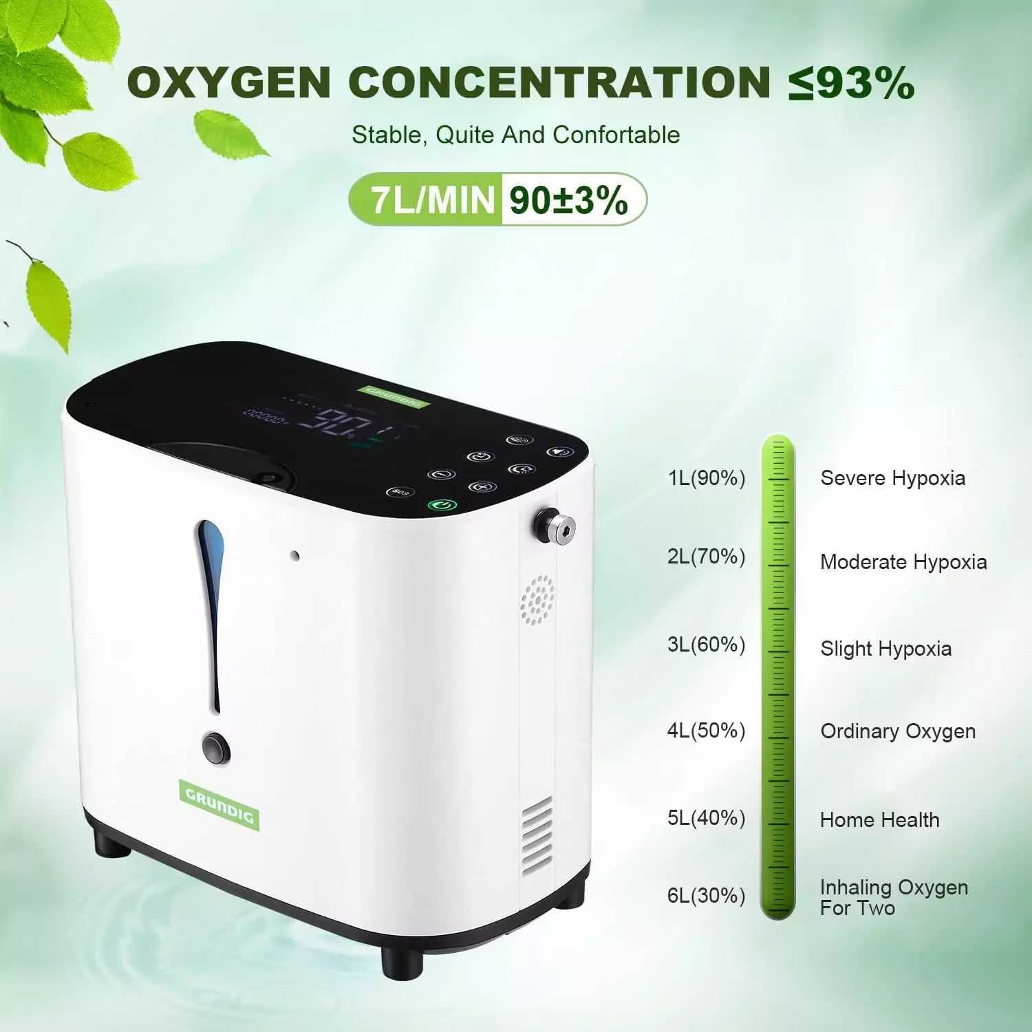Home » Keuken & Wonen » Wonen » Klimaatbeheersing » GRUNDIG Draagbare zuurstofconcentrator, 93% sterk geconcentreerde zuurstofmakerstaaf 1-6 l/min Verstelbare stroom zuurstofgenerator met anionfunctie voor auto, huis en reizen