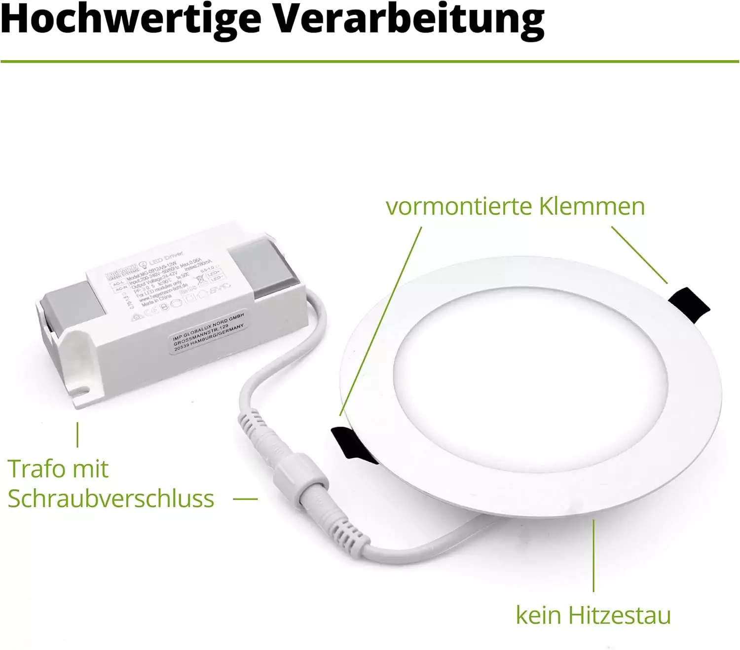 Home » Keuken & Wonen » Wonen » Verlichting » HAGEMANN 4 x LED Inbouwspots Rond 9 Watt 890 lm IP20 – 135 mm Boorgat 230 V Inbouwspot – LED Plafondspots Vervangen 75 W Halogeen [Energieklasse E]