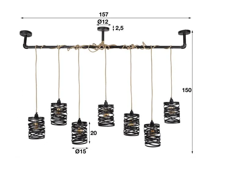 Hanglamp Twist wikkel XL 7 lampen