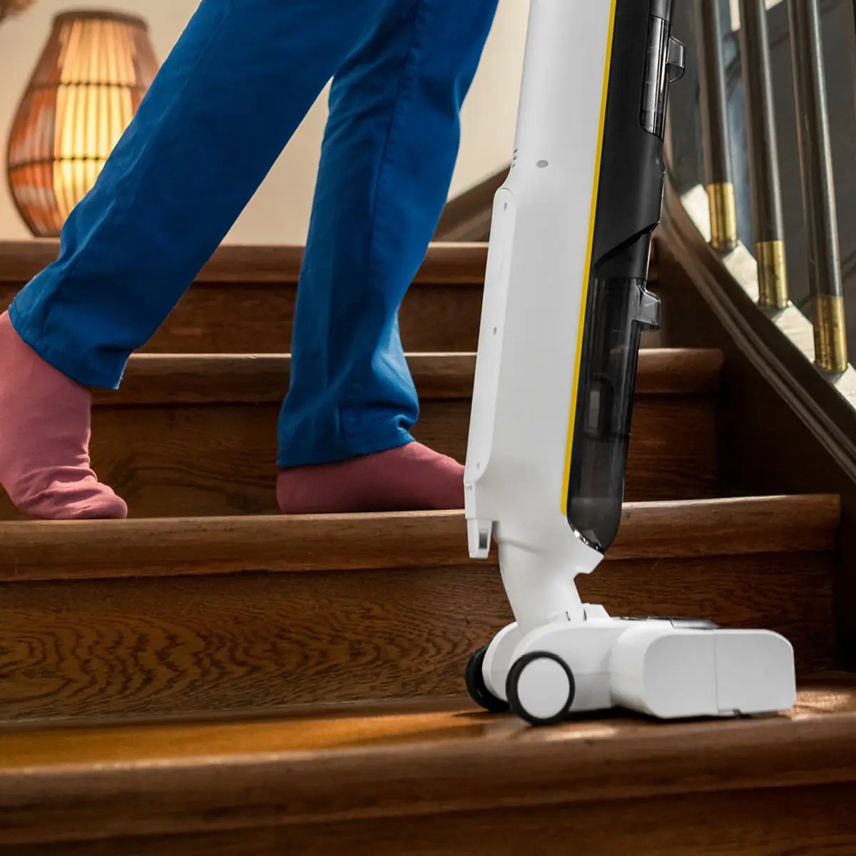 De Kärcher FCV 4 is een geavanceerde 3-in-1 vloerreiniger met krachtige zuigfunctie – speciaal ontwikkeld voor snel en grondig schoonmaken van harde vloeren. Dankzij de innovatieve technologie worden vuil, water en resten tegelijk verwijderd, zonder gedoe met emmers of dweilen.