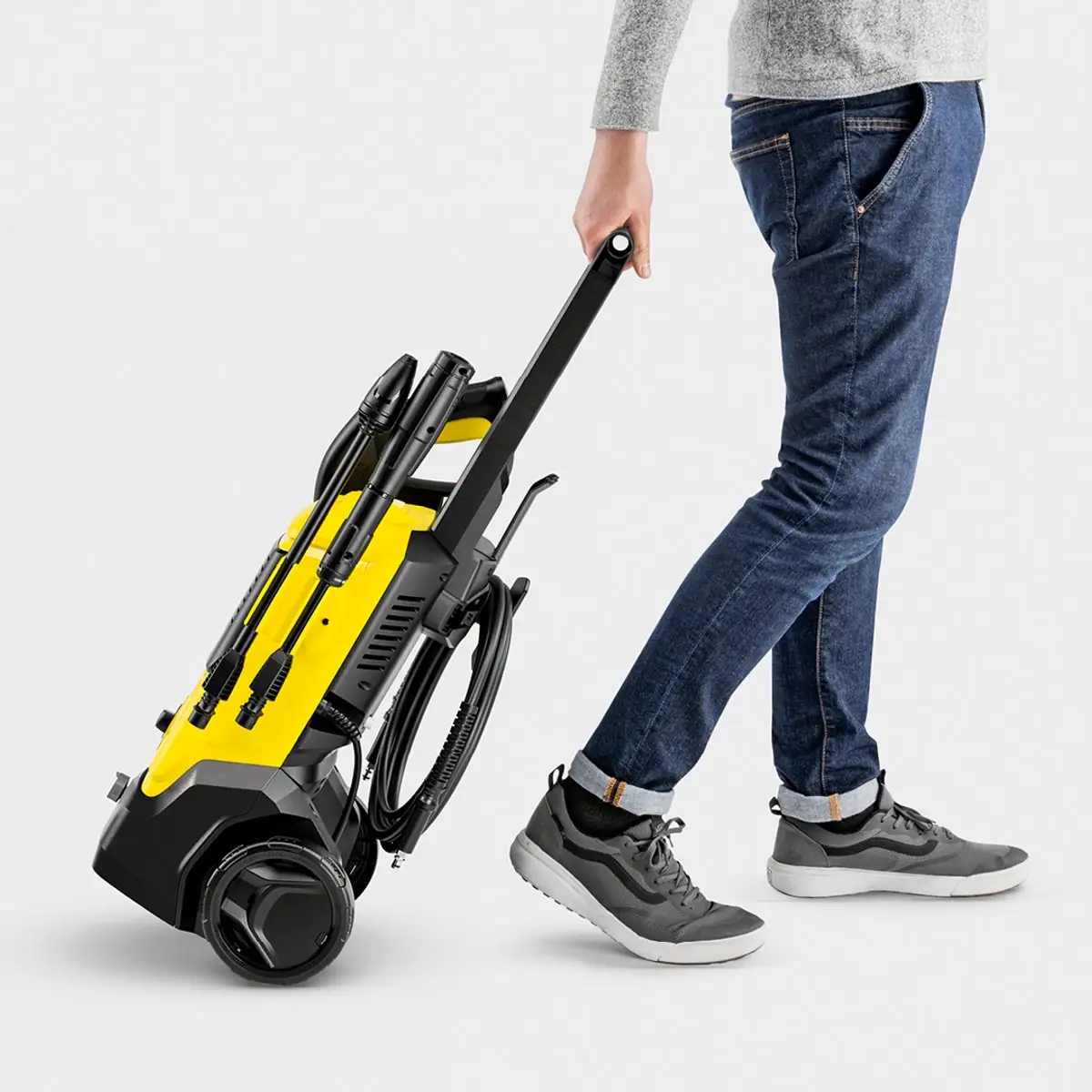 De K 4 FJ is ideaal voor regelmatige reiniging van gemiddelde vervuiling op auto's, paden en oppervlakken rond het huis. Incl. schuimmondstuk.