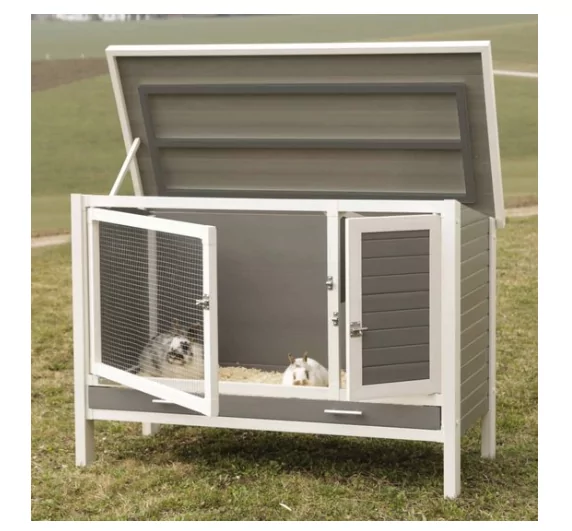 Dankzij de twee deuren die apart geopend kunnen worden, is dit konijnenhok niet alleen praktisch in gebruik voor de eigenaar, maar ook handig en fijn om in te wonen voor de dieren. Het hok is ook geschikt voor andere knaag- huisdieren zoals hamsters, gerbils of cavia's. De tunnel naar de rustruimte zal ervoor zorgen dat ze met plezier in dit huisje wonen! Dankzij de milieuvriendelijke productie, is het Kerbl knaagdierenhuis, gemaakt van gerecyclede materialen (60% kunstof en 40% hout), waterdicht. Ook biedt het goede isolering tegen slecht weer en zal het niet snel verweren. De materialen zijn snel en gemakkelijk schoon te maken, zonder vieze geurtjes vast te houden.