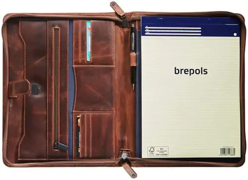 Schrijfmap Maverick The Original A4 met rits en blocnote leer bruin