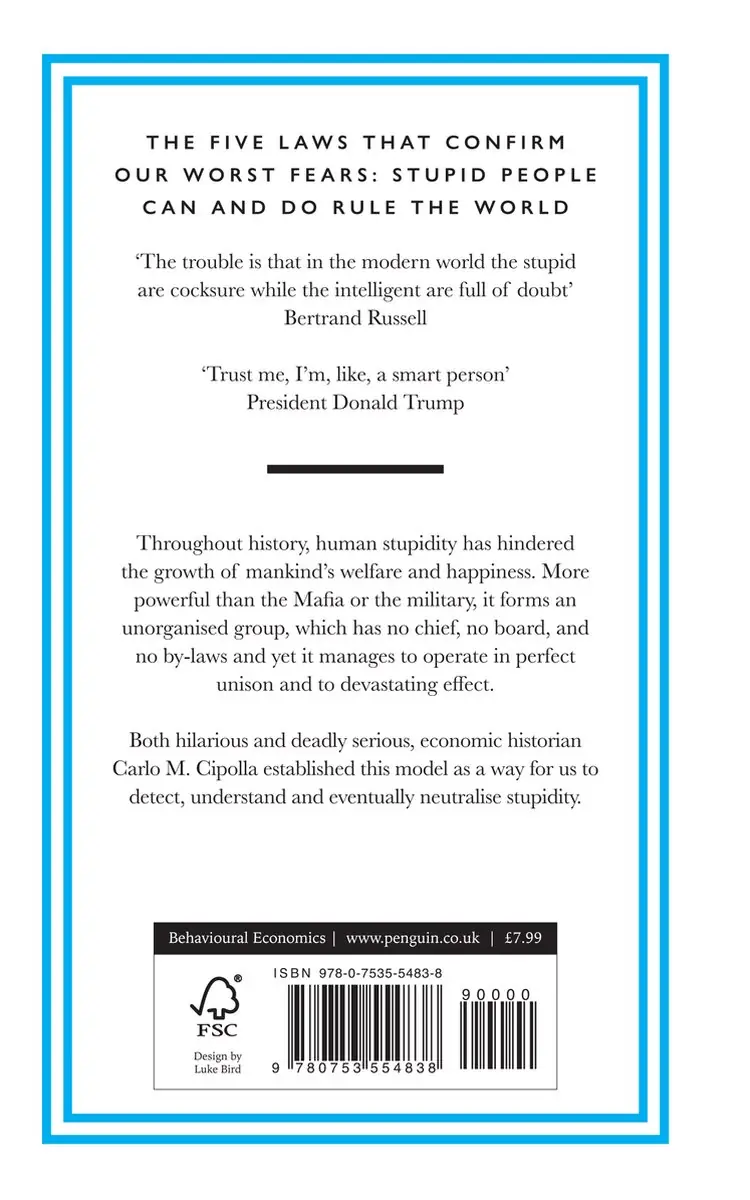 The Basic Laws of Human Stupidity van Carlo M. Cipolla is een scherpe, humoristische en verrassend verhelderende analyse van menselijk gedrag. In dit compacte maar invloedrijke boek beschrijft Cipolla op briljante wijze hoe domheid een constante kracht vormt in de samenleving — en waarom zelfs intelligente mensen er vaak door worden beïnvloed.
