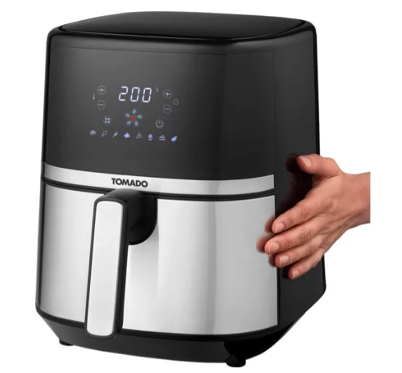 Met deze airfryer TAF5401S van Tomado frituur, grill, rooster en bak je diverse lekkernijen. Van frites en snacks tot aan lopende appeltaartjes! De airfryer heeft een van 5,4 liter waarmee je 800 gram friet kan bereiden, genoeg voor 3-4 personen. Kies simpelweg een van de 8 automatische programma’s op het digitale display of stel de temperatuur zelf in voor de perfecte bereiding van je maaltijd. Doordat je bakt met hetelucht is je maaltijd gelijk een stuk gezonder en nog net zo krokant. Verantwoord genieten dus! De airfryer is na gebruik eenvoudig schoon te maken. De frituurmand mag in de vaatwasser gereinigd worden.