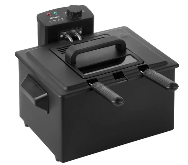 De Tomado TDF5001B is een extra ruime frituurpan met een inhoud van 5 liter. Hij is geschikt voor een bakcapaciteit van 1000 gram. De temperatuur stel je gemakkelijk in met de draaiknop tot maximaal tot 190°C. De frituurpan is perfect wanneer je bijvoorbeeld frites en snacks tegelijk wilt frituren, dankzij de 2 mandjes naast elkaar. Wil je een grote hoeveelheid frites tegelijk bakken, kies dan voor de grote mand. Frituren met een koude zone is direct een stuk gezonder, omdat de olie langer vers blijft in de pan. Het verwarmingselement hangt direct in de olie, waardoor je maaltijd ook nog eens lekker knapperig wordt!