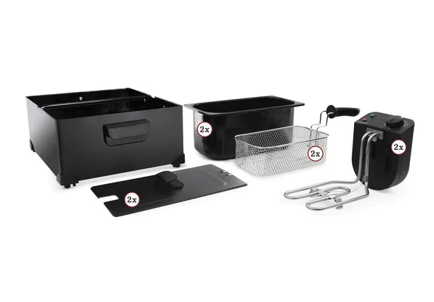 Deze friteuse heeft een zeer ruime inhoud van 2 x 3 liter waarmee de frituurpan uitermate geschikt is om bijvoorbeeld frites en snacks tegelijkertijd kunt bakken. Doordat het vet in beide pannen gescheiden is zal het langer vers blijven. Ook heb je daardoor geen geur- en smaakoverdracht.