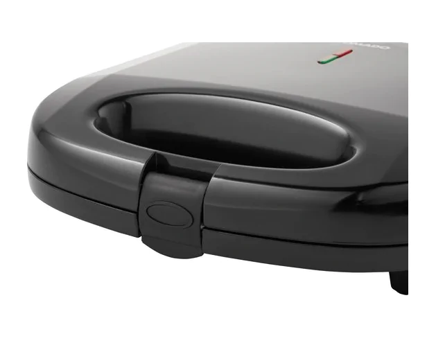 Dit tosti ijzer is voorzien van een strak zwart design. De buitenkant is gemaakt van zwart kunststof. Om de tosti of panini goed te klemmen tussen de platen heeft dit tosti ijzer een vergrendelbare handgreep.