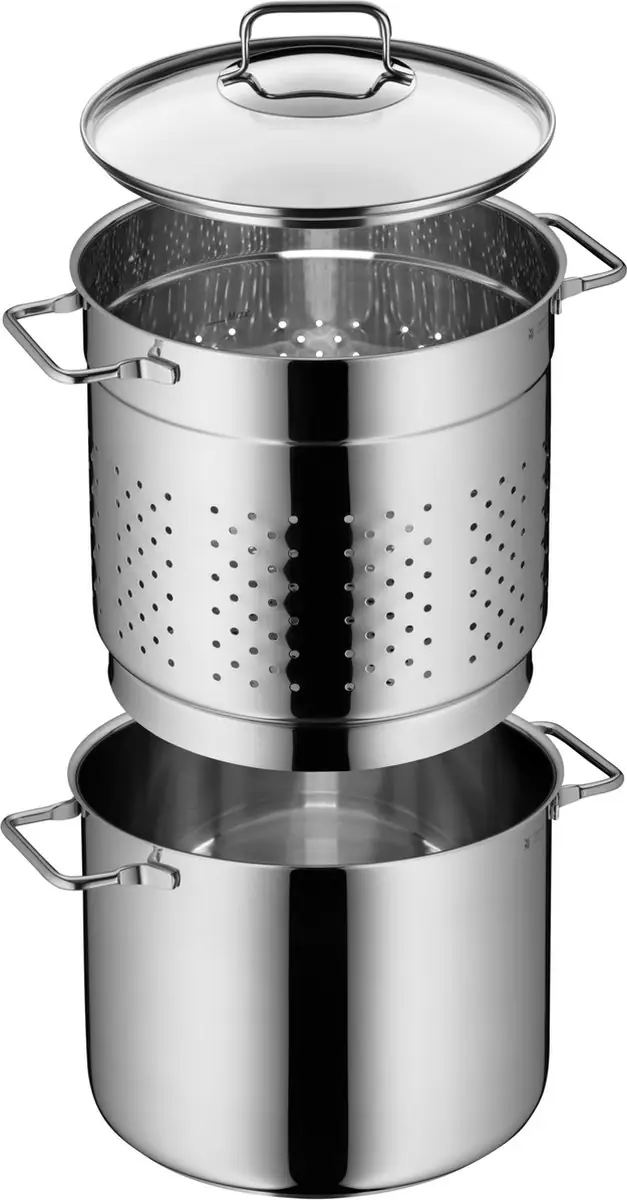 De WMF kookpan/pastapan met een diameter van 24 cm is ideaal voor het bereiden van pasta, groenten, aardappelen en meer. De meegeleverde inzet maakt het afgieten gemakkelijk en veilig, zonder dat je een extra vergiet nodig hebt.