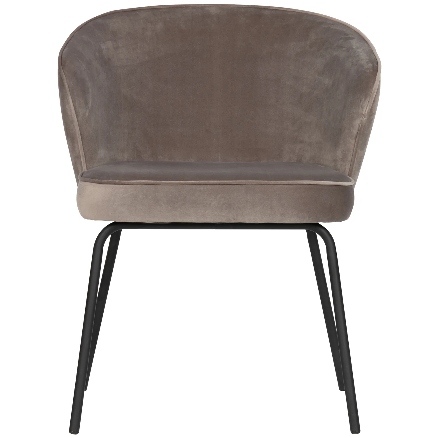 De WOOOD Admit eetkamerstoel is een comfortabele en stijlvolle stoel met een warme, uitnodigende uitstraling. De stoel is uitgevoerd in een zachte velvet bekleding in khaki/bruin en staat op slanke metalen poten met een matzwarte afwerking. Dankzij de ronde vormen en de volle zitting past dit model mooi in zowel een modern als een sfeervol interieur. De stoel is zeer geschikt voor gebruik aan de eettafel, maar komt ook goed tot zijn recht als losse stoel in een woon- of slaapkamer.