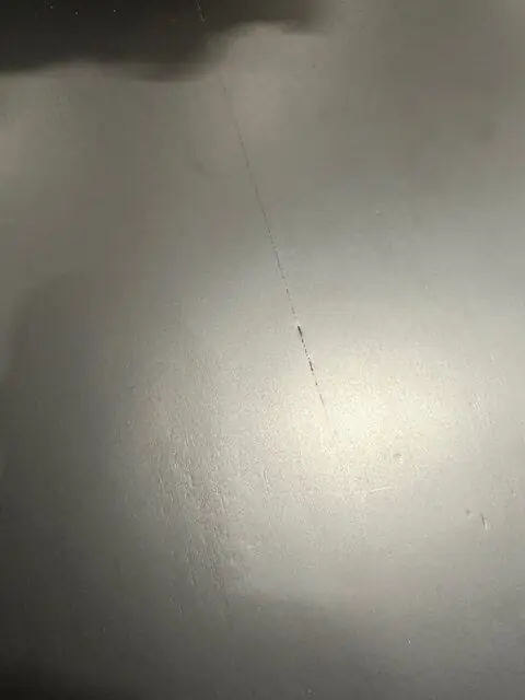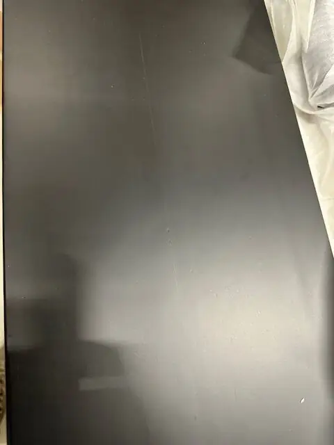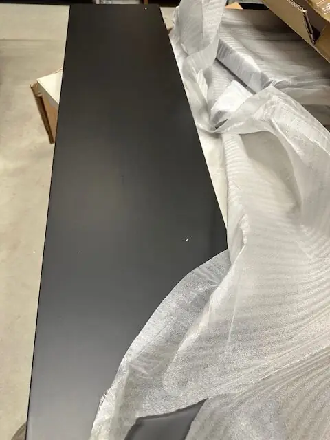 Zie foto voor een heel klein krasje door een scherp mesje. Als je iets op deze bank zet, zie je het niet meer
