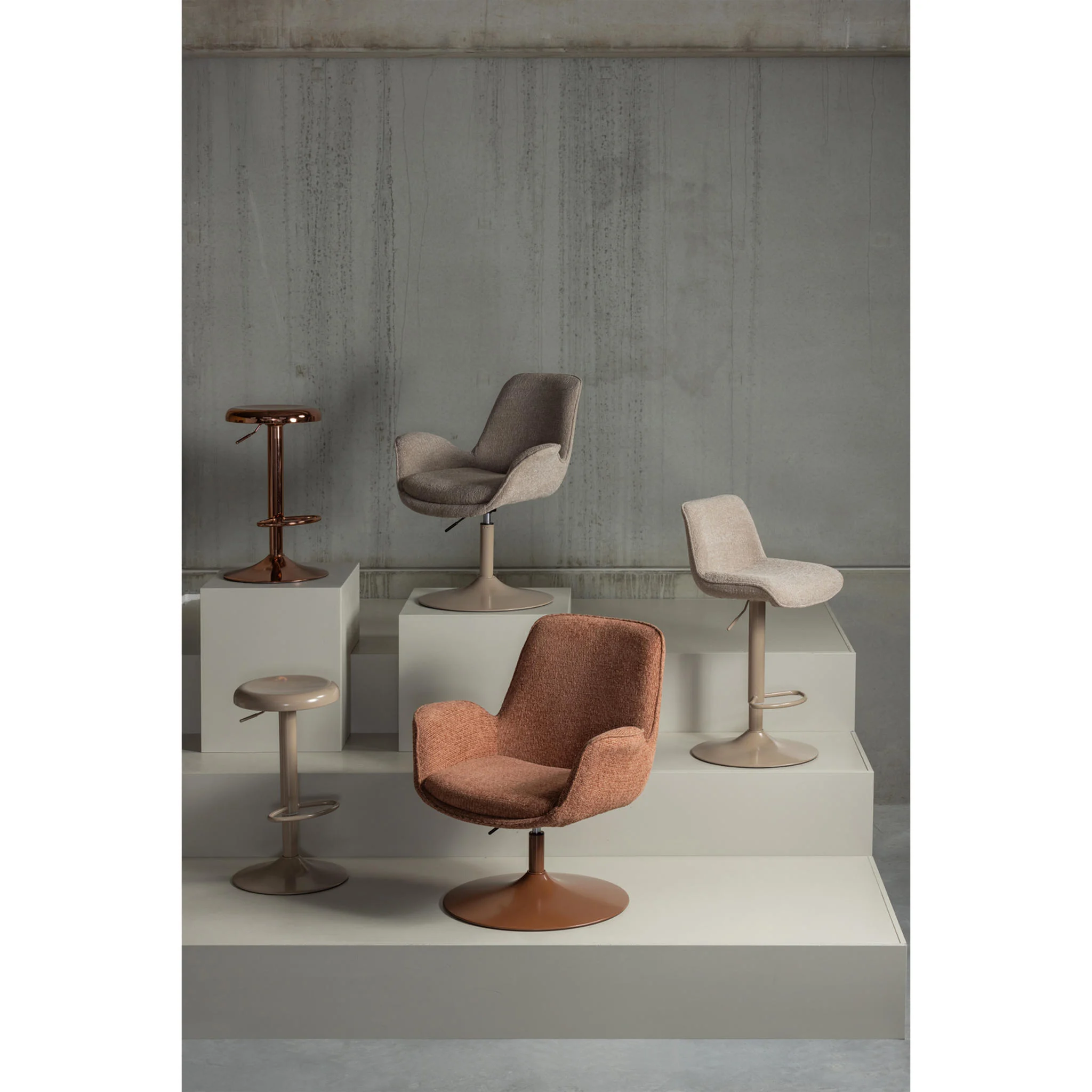De WOOOD Isaac barkruk is een stoere en praktische barkruk met een opvallende, moderne uitstraling. Door de koperkleurige afwerking krijgt deze barkruk een eigentijds karakter dat goed past aan een kookeiland, bartafel of hoge eettafel. Het metalen ontwerp zorgt voor een stevige basis, terwijl de voetensteun extra comfort biedt tijdens het zitten. Dankzij het compacte formaat is deze barkruk ook geschikt voor ruimtes waar je stijl en functionaliteit wilt combineren.