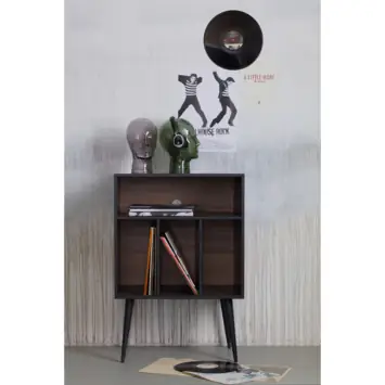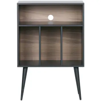 James is bovendien praktisch ontworpen. De drie open vakken aan de onderzijde zijn speciaal geschikt voor het opbergen van lp’s. Het brede bovenste vak is ontworpen voor bijvoorbeeld een versterker, mediaspeler of decoratieve accessoires. In de achterzijde is een opening verwerkt om snoeren netjes weg te werken. Daardoor is dit meubel niet alleen decoratief, maar ook zeer bruikbaar als opbergkastje of compact audiomeubel.